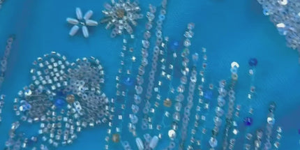Beaded with Embroidered Rhinestones - Light Blue / Silver - 1 yard