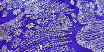 Beaded with Embroidered Rhinestones - Royal Blue / Silver - 1 yard