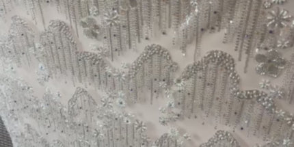 Beaded with Embroidered Rhinestones - Light Pink / Silver - 1 yard