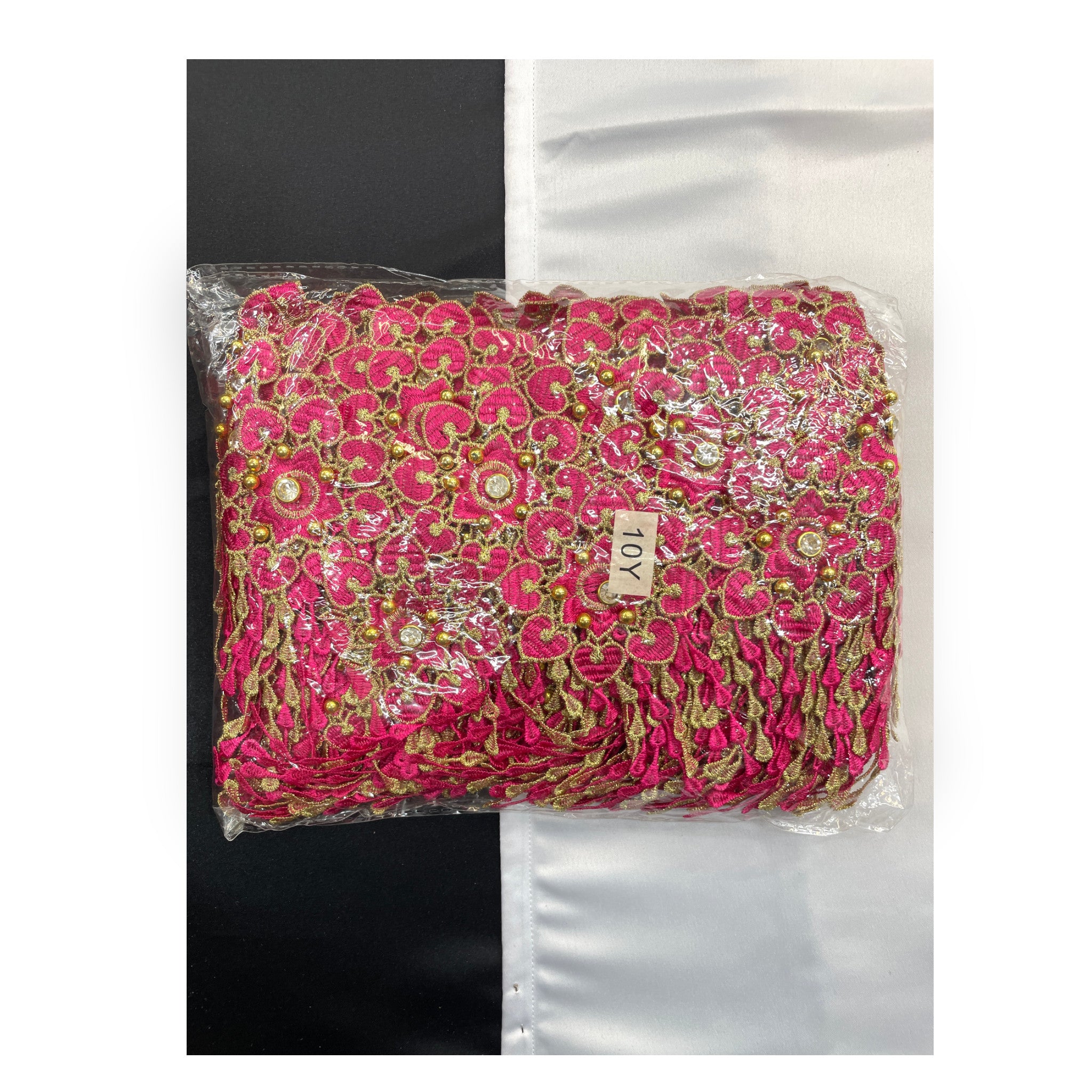 Floral Lace Trimmings Pack - Fuscia Pink / Gold