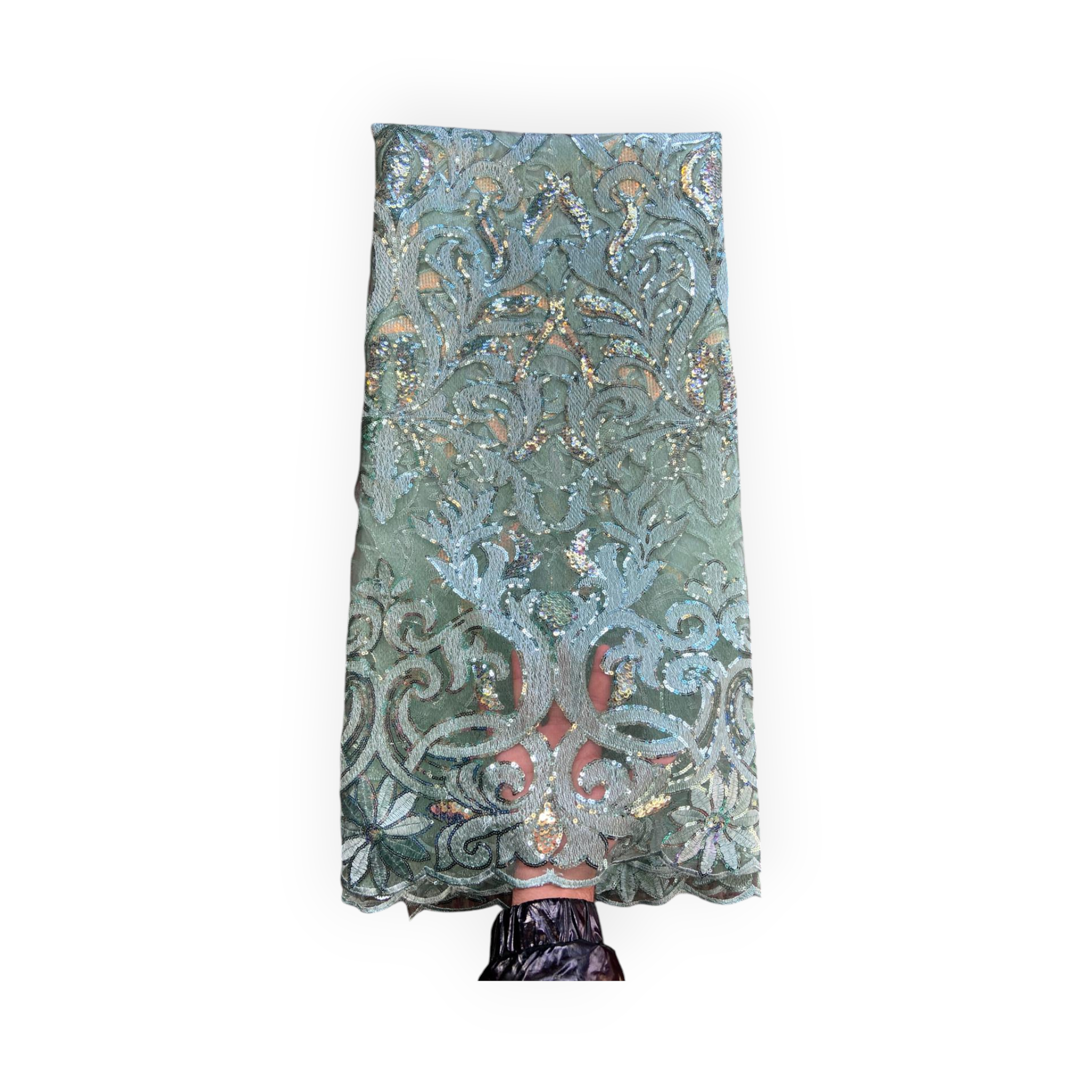 French Lace with Sequins in Lime Green – 5 Yards Piece