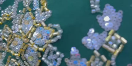Pearl / Beaded Wedding Dress - Green / Gold - 1 Yard