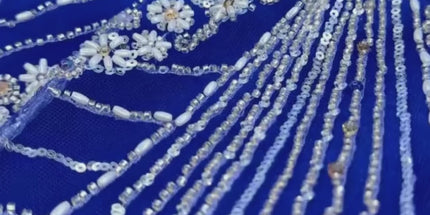 Luxurious Pearl / Beaded Lace - Royal Blue / Silver - 1 yard