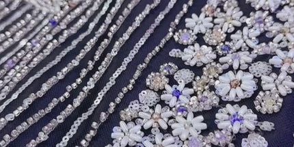 Luxurious Pearl / Beaded Lace - Black / Silver - 1 yard
