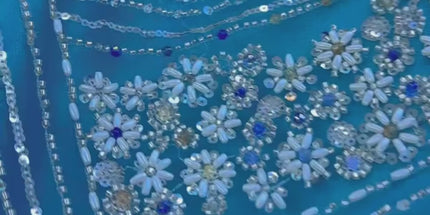 Luxurious Pearl / Beaded Lace - Sky Blue / Silver - 1 yard