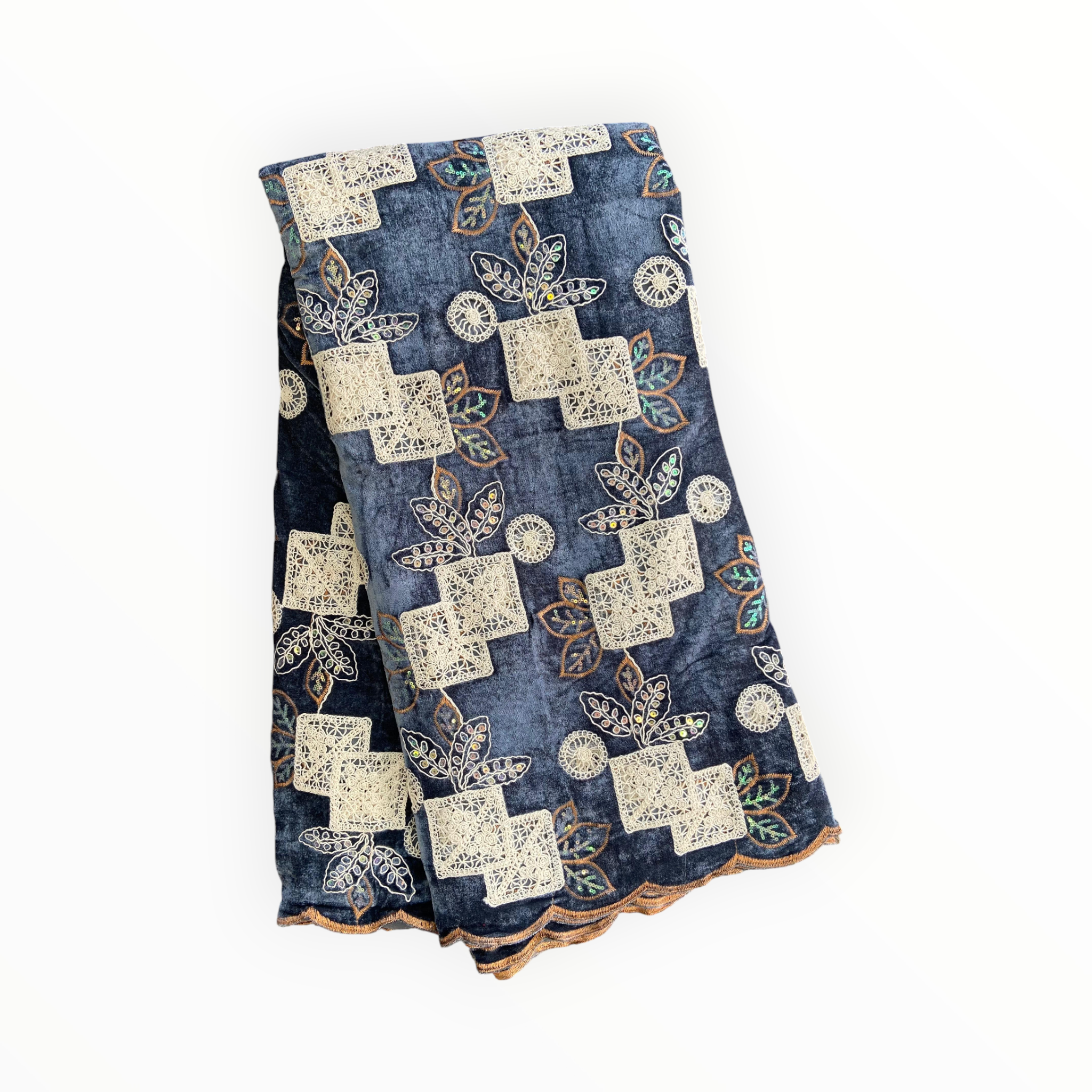 Luxury Velvet Lace Fabric in Gray / Off White – 5 Yards Piece (Patterned Design Collection)