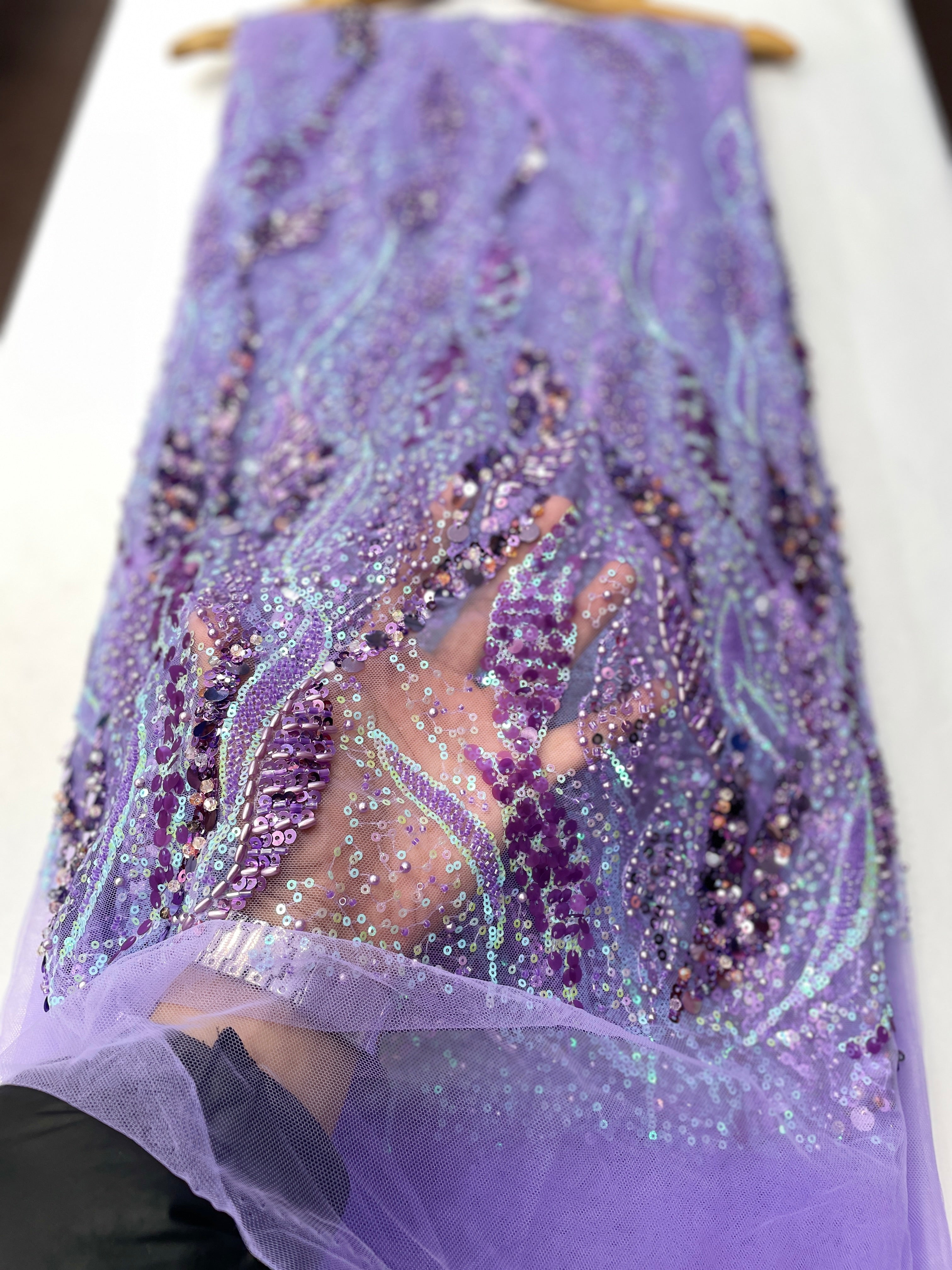 Pearl / Beaded Wedding Dress - Lilac - 1 Yard
