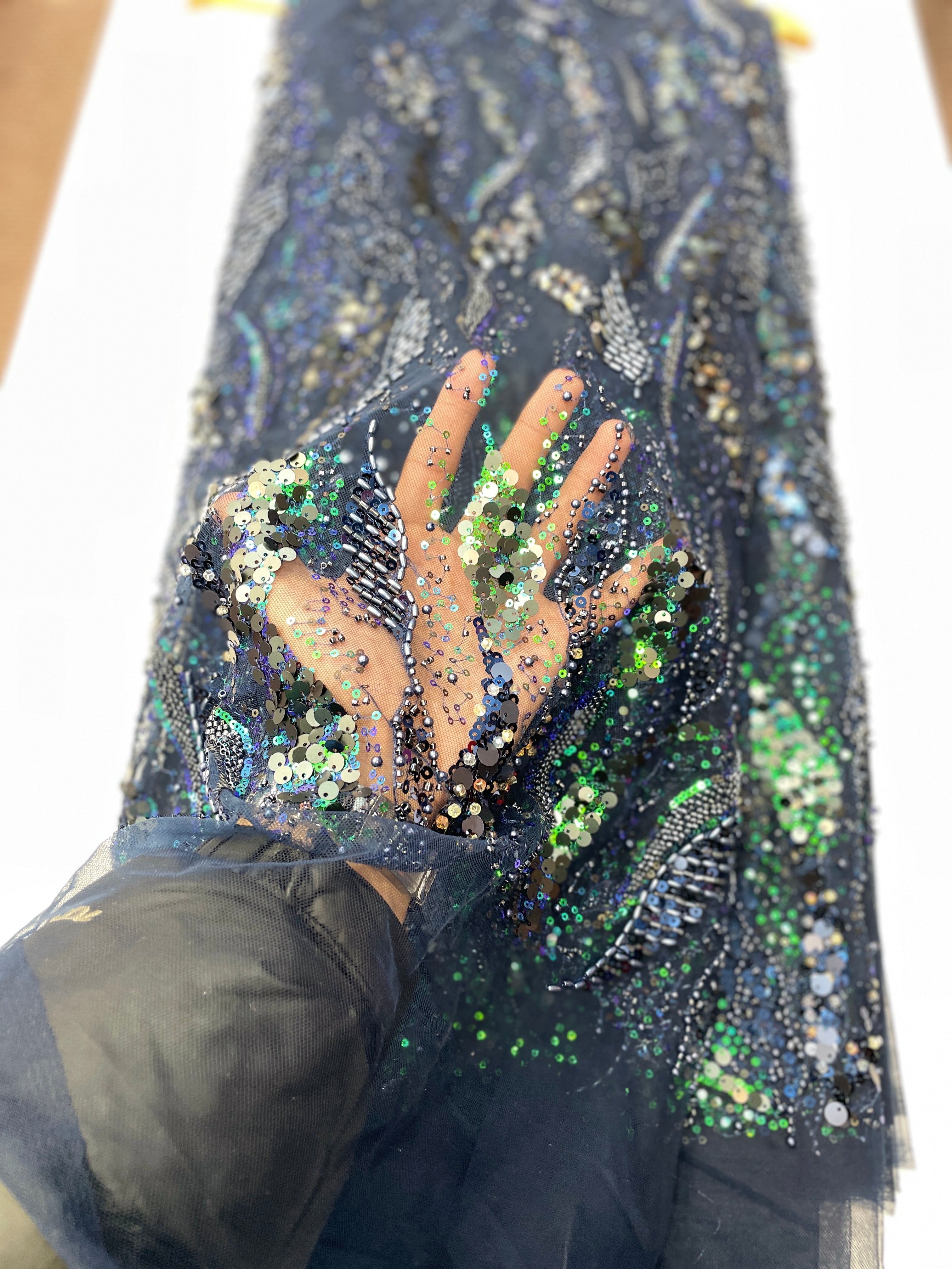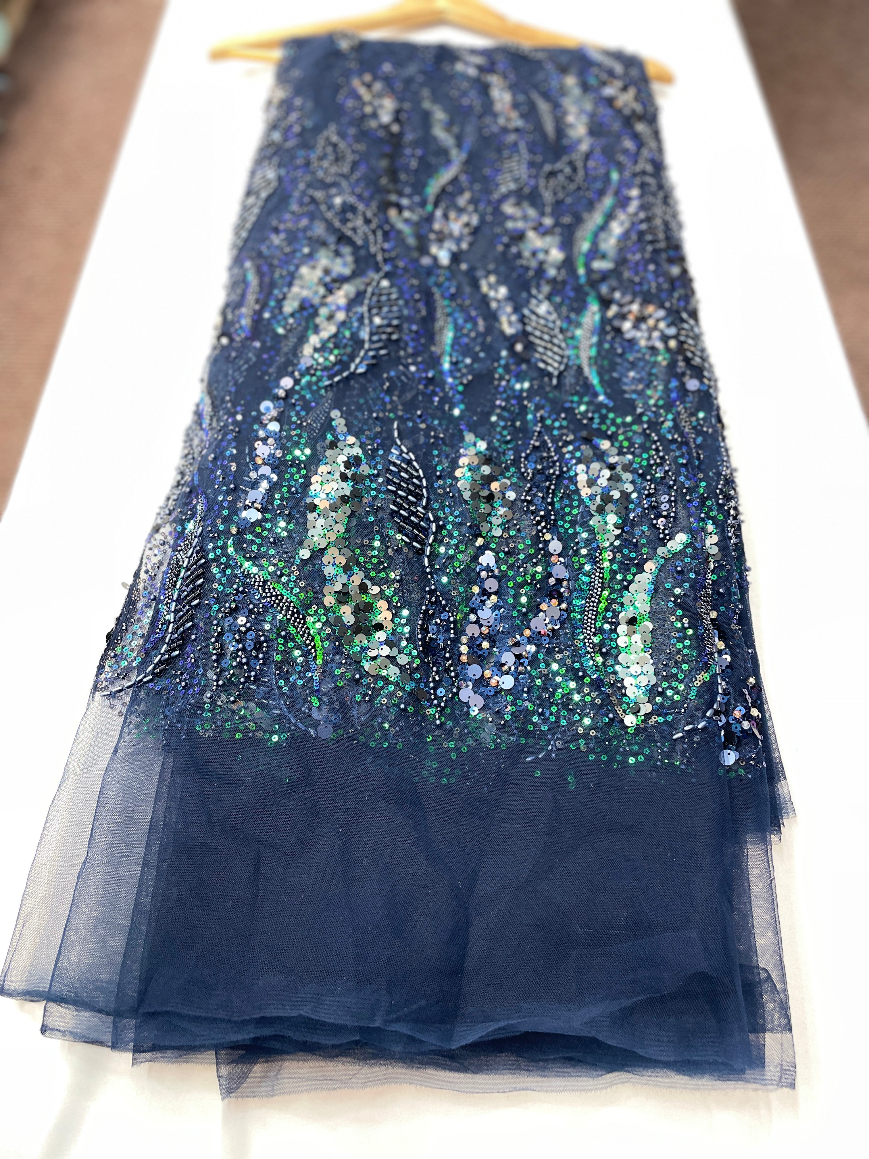 Pearl / Beaded Wedding Dress - Navy Blue - 1 Yard