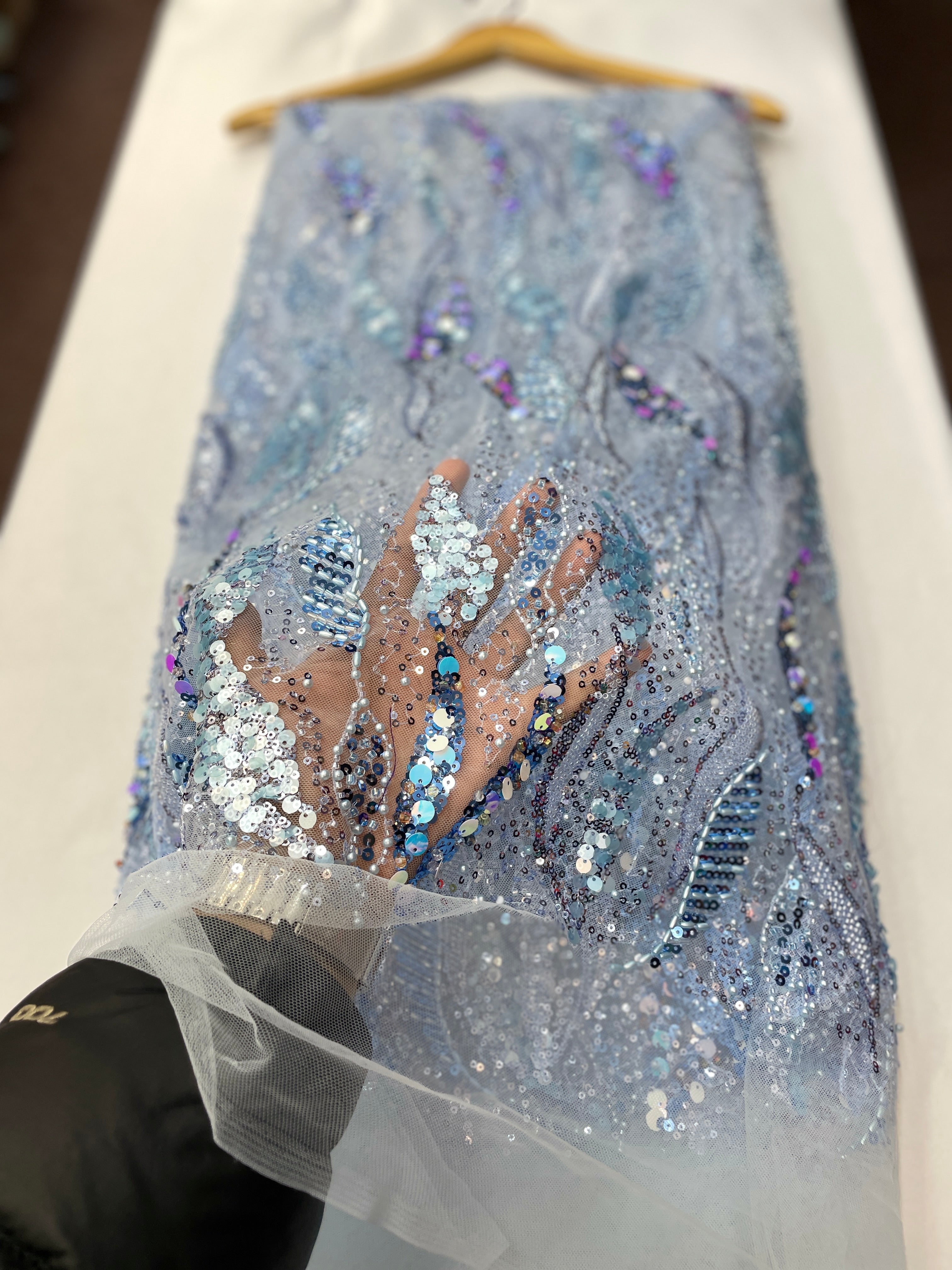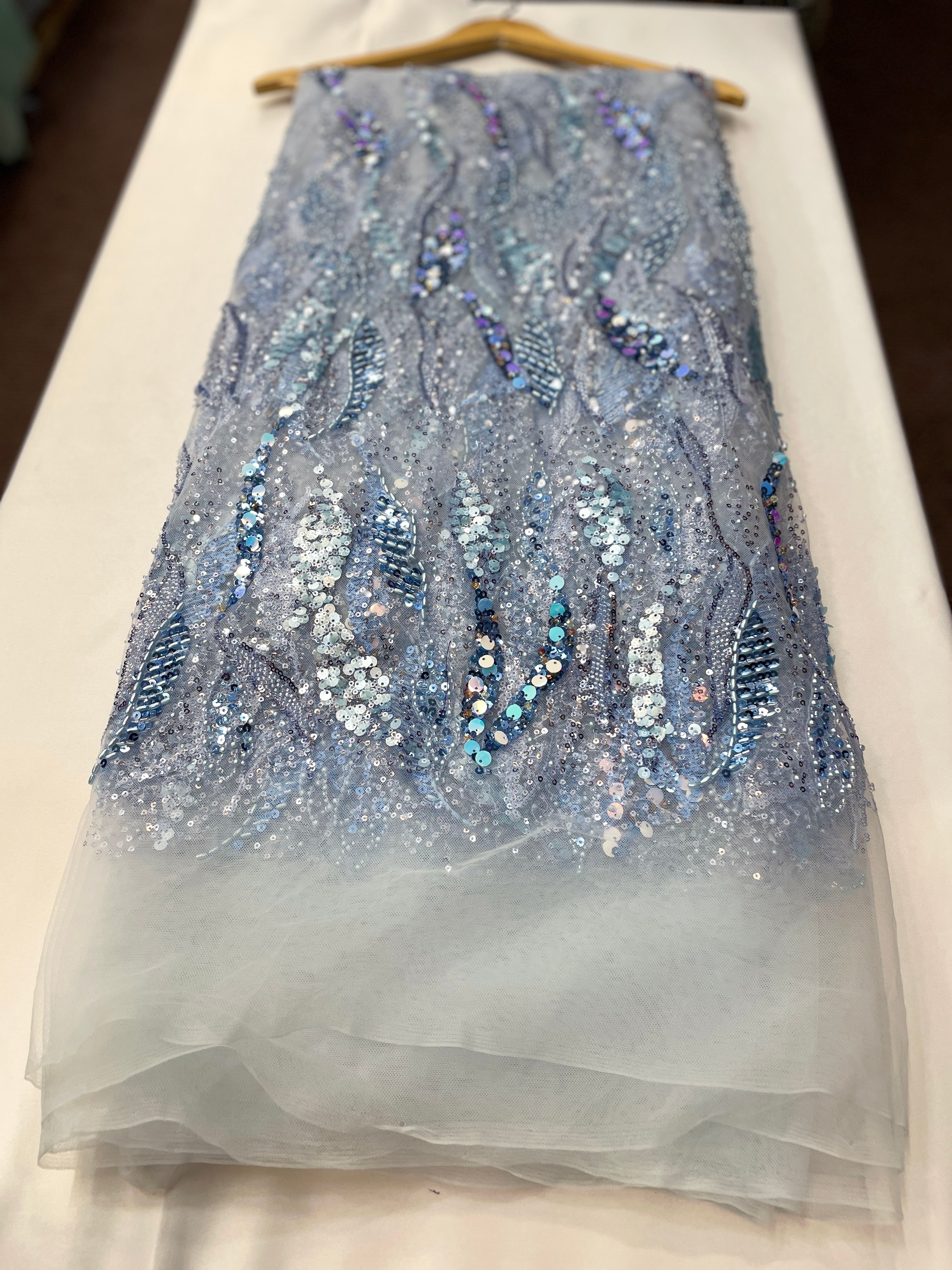 Pearl / Beaded Wedding Dress - Powder Blue - 1 Yard