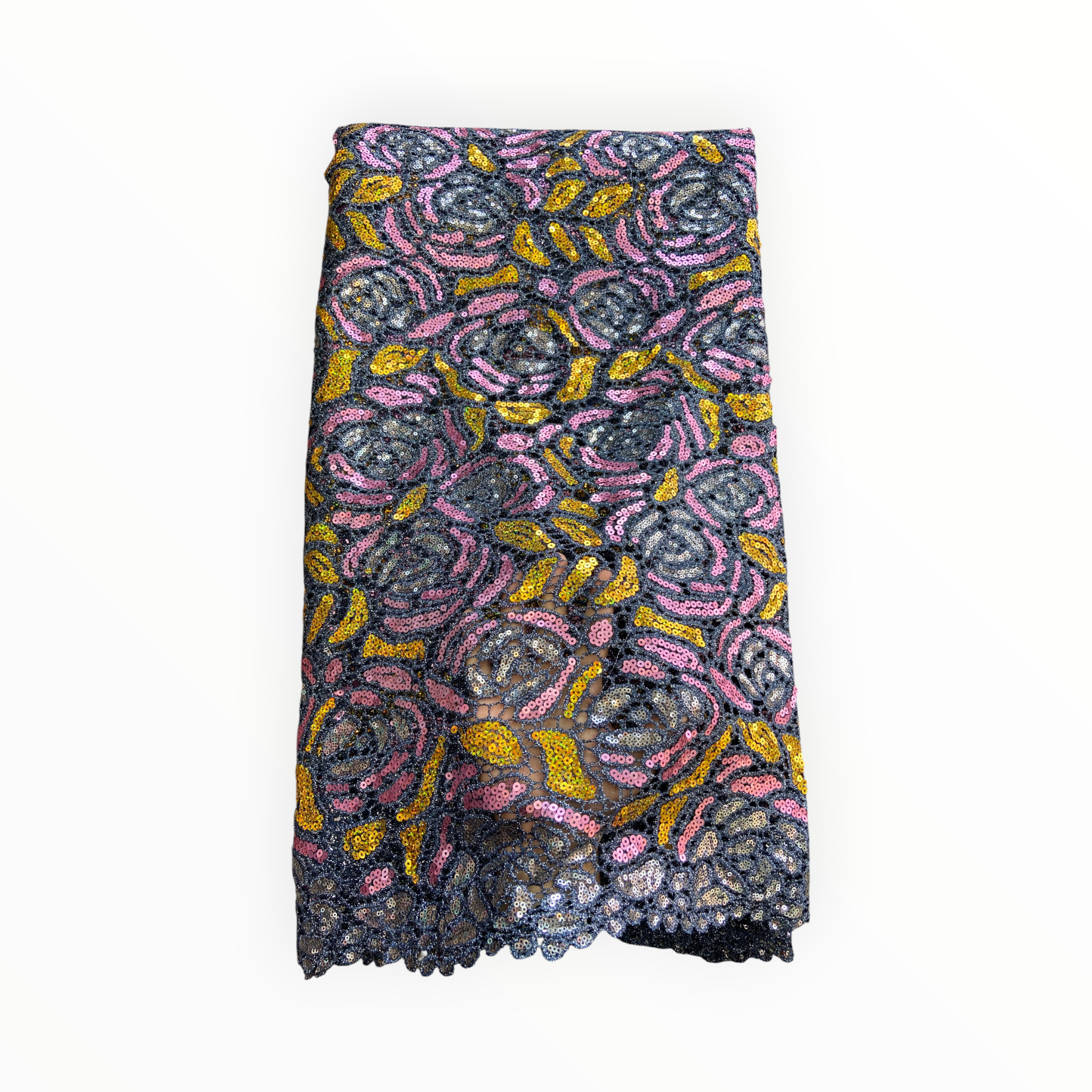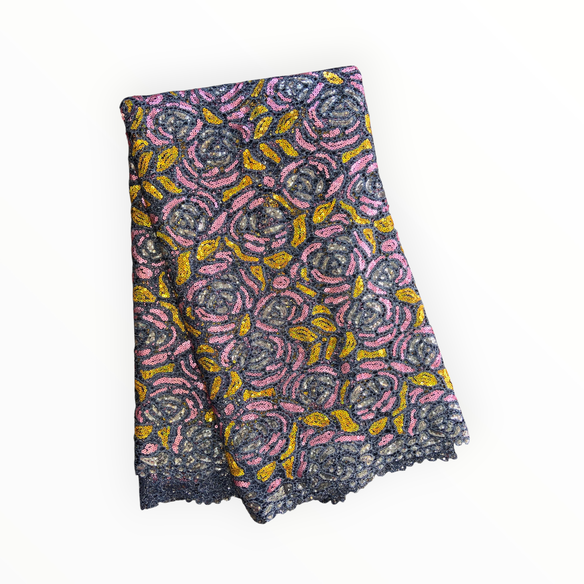 Premium Cord Lace with Sequins in Gray / Pink / Gold – 5 Yards Piece (New Collection)