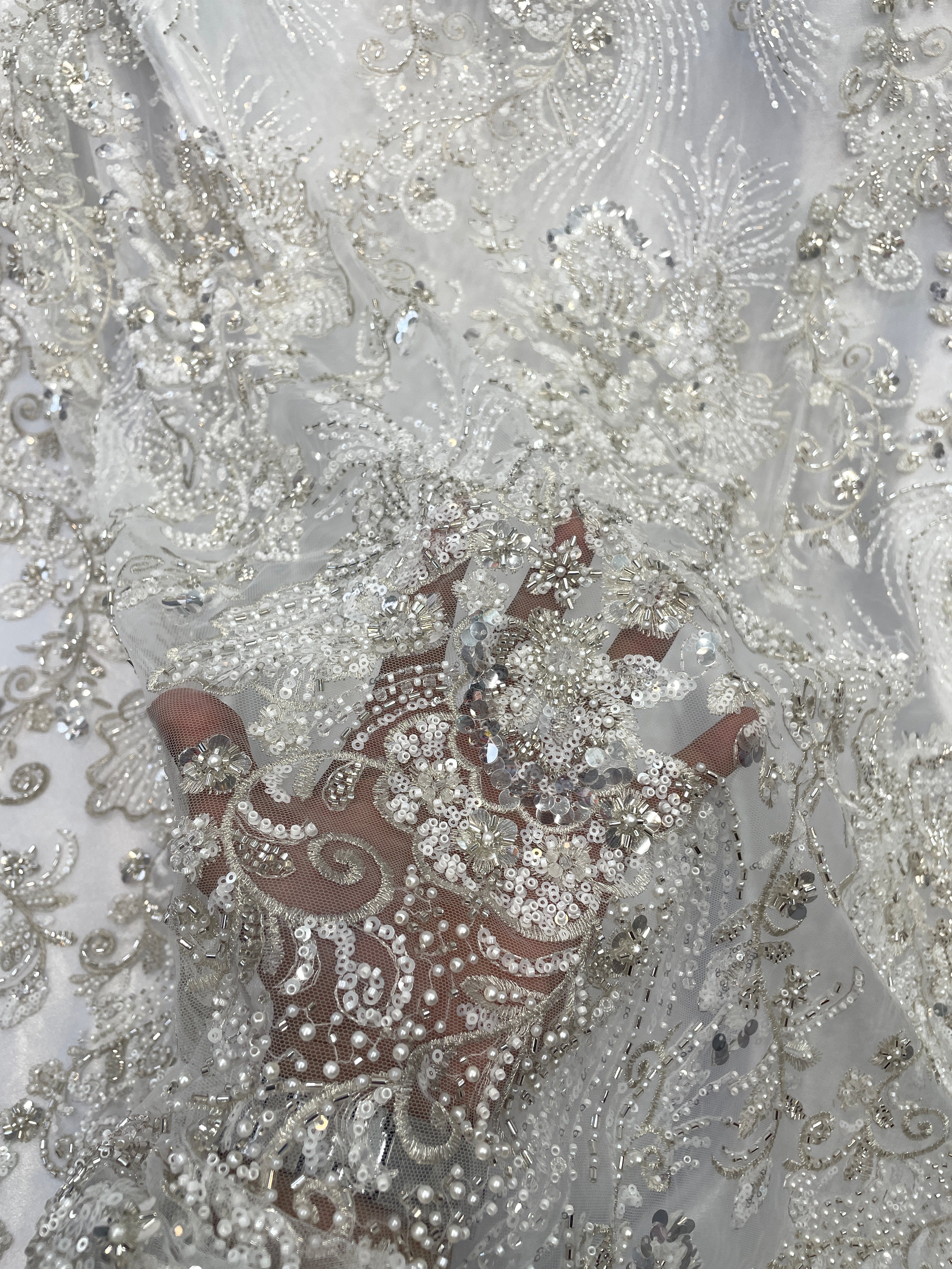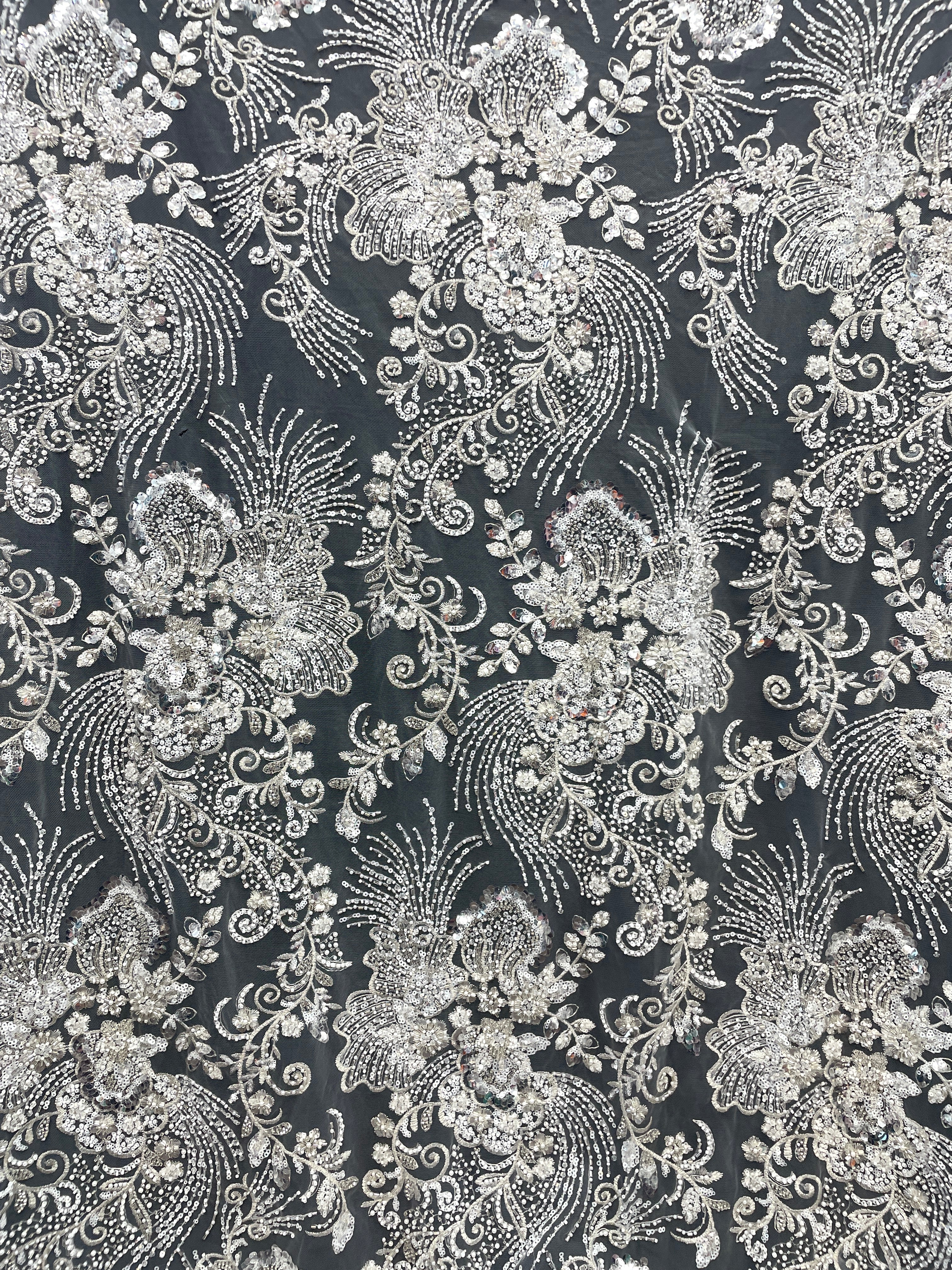 Luxurious African Beaded Lace Tulle Fabric (1 Yard)