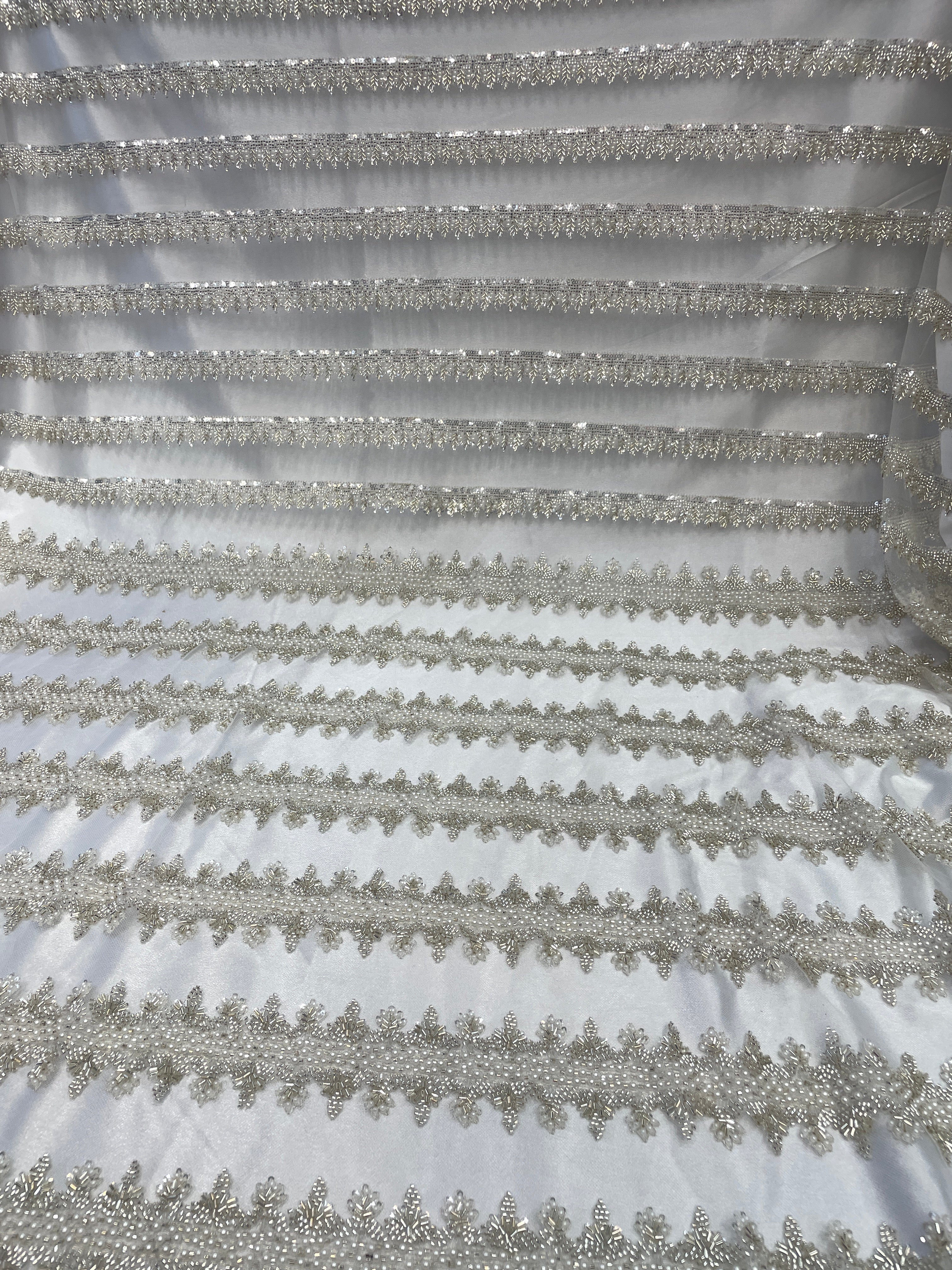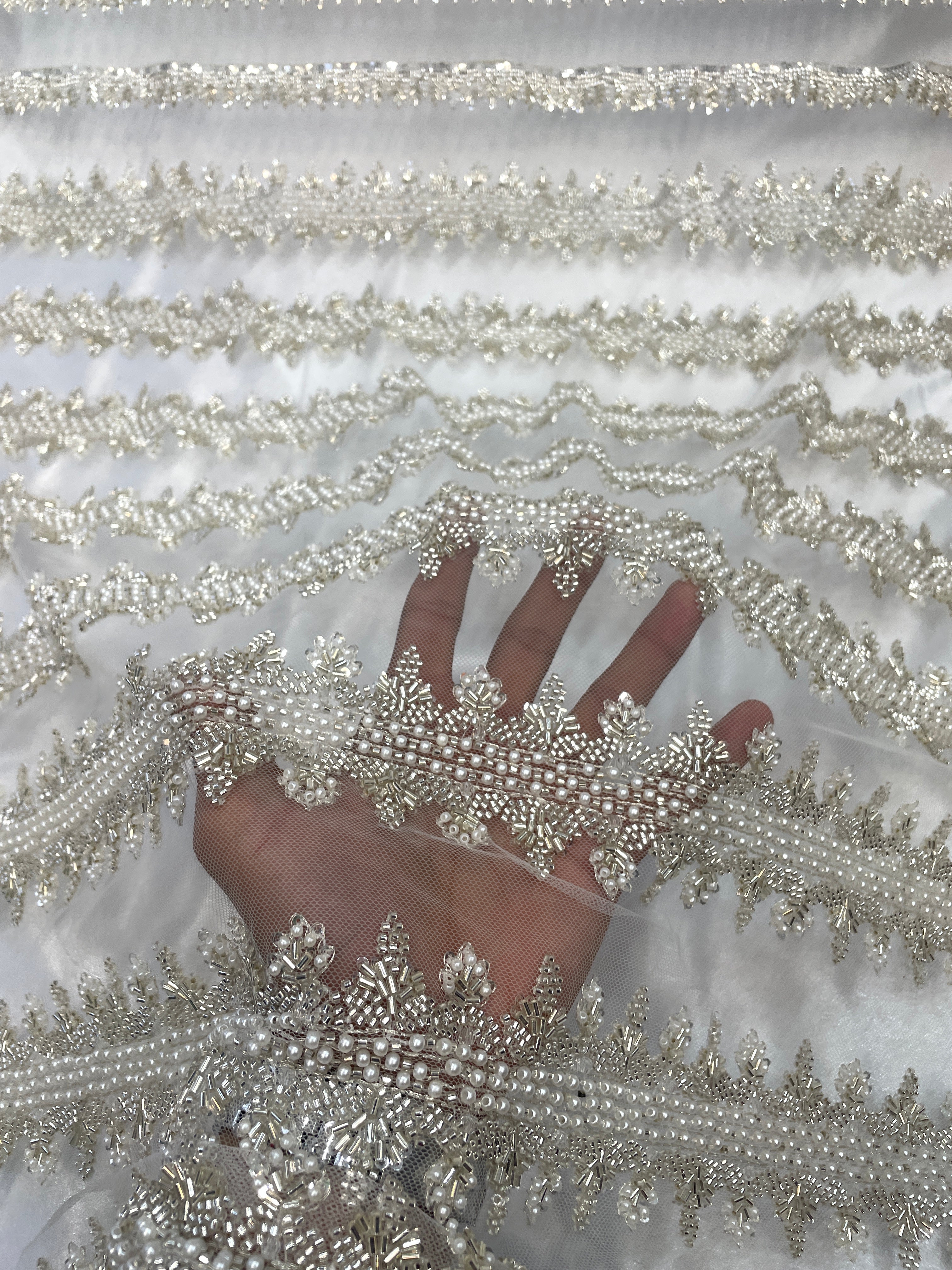 Prestige Pearl / Beaded Lace - White - 1 Yard